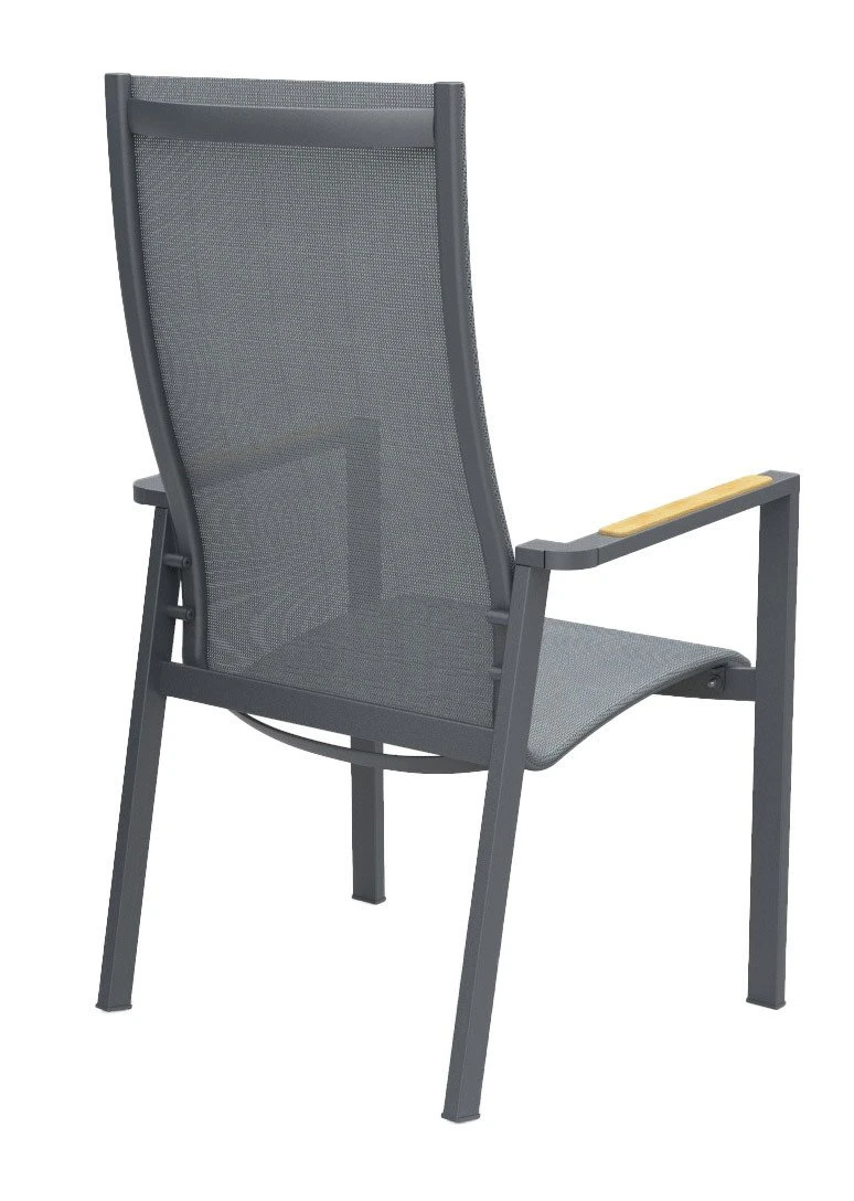 Es hat die Farbe Grau und überzeugt mit seinem Bezug aus Textilen. Die grauen Füsse aus Aluminium vervollkommnen das Möbelstück. Ihr Komfort wird mit den gemütlichen Armlehnen garantiert.