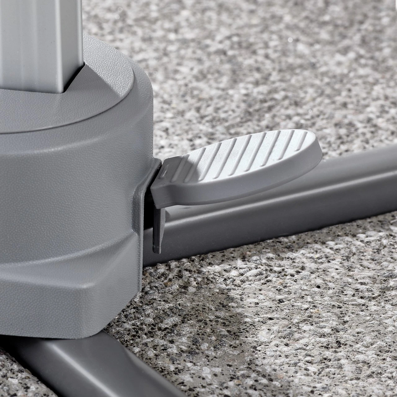 Der Ampelschirm “Sun Deluxe Solar” von Ambia begeistert mit seiner innovativen Bauweise. Als besonders praktisch erweist sich dabei, dass sich die Halterung auf kreuzförmiger Basis seitlich befindet, sodass der gesamte Raum unterhalb des ca. 300 x 265 x 300 cm großen Daches toll ausnutzbar ist. Zudem lässt sich dieses um 360° drehen, damit der Schattenwurf individuell bestimmbar ist. Das integrierte LED-Licht sorgt auch in den Abendstunden für genügend Beleuchtung. Bereichern Sie jetzt Ihren Außenbereich mit dem Ampelschirm “Sun Deluxe Solar” von Ambia.