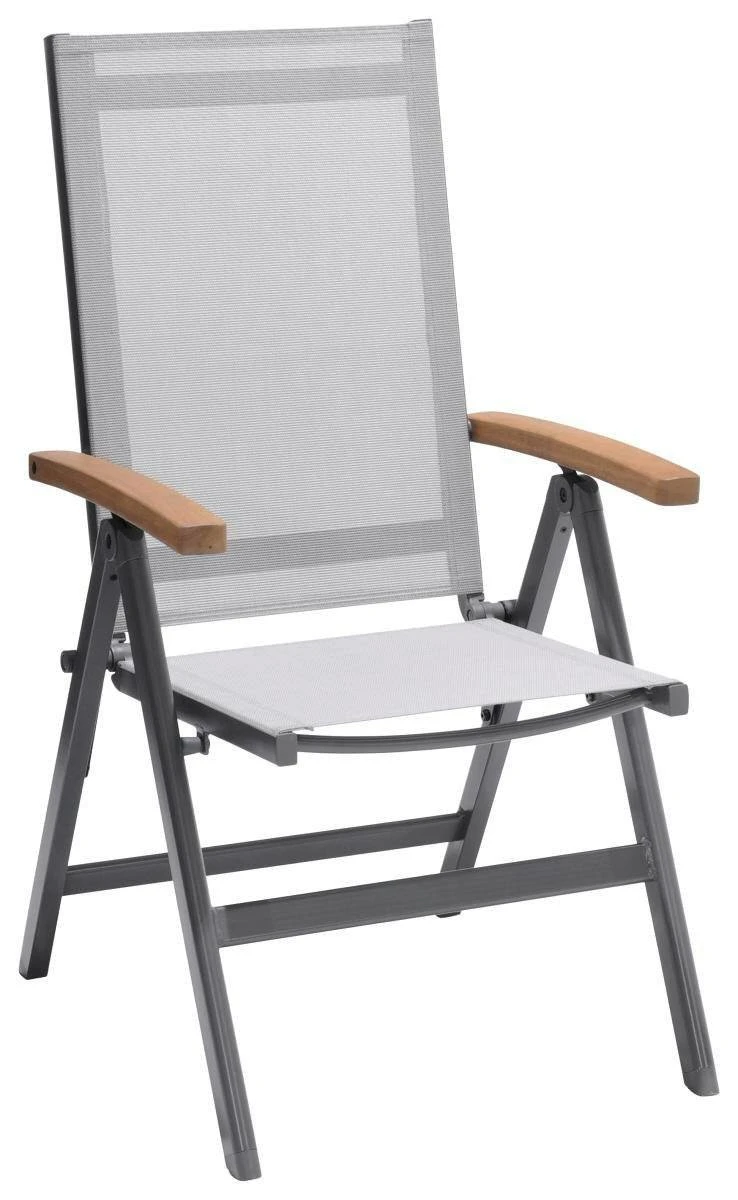 Das Aluminiumgestell ist stabil und auf eine maximale Belastung von 160 kg ausgerichtet. Der Stuhl mit den Maßen B/H/T von ca. 56 x 106 x 65 cm verfügt für haptischen Komfort über Armlehnen aus FSC-Eukalyptusholz. Sitzen Sie mit Stil auf dem Multipositionssessel “BURGENLAND” von Ambia!