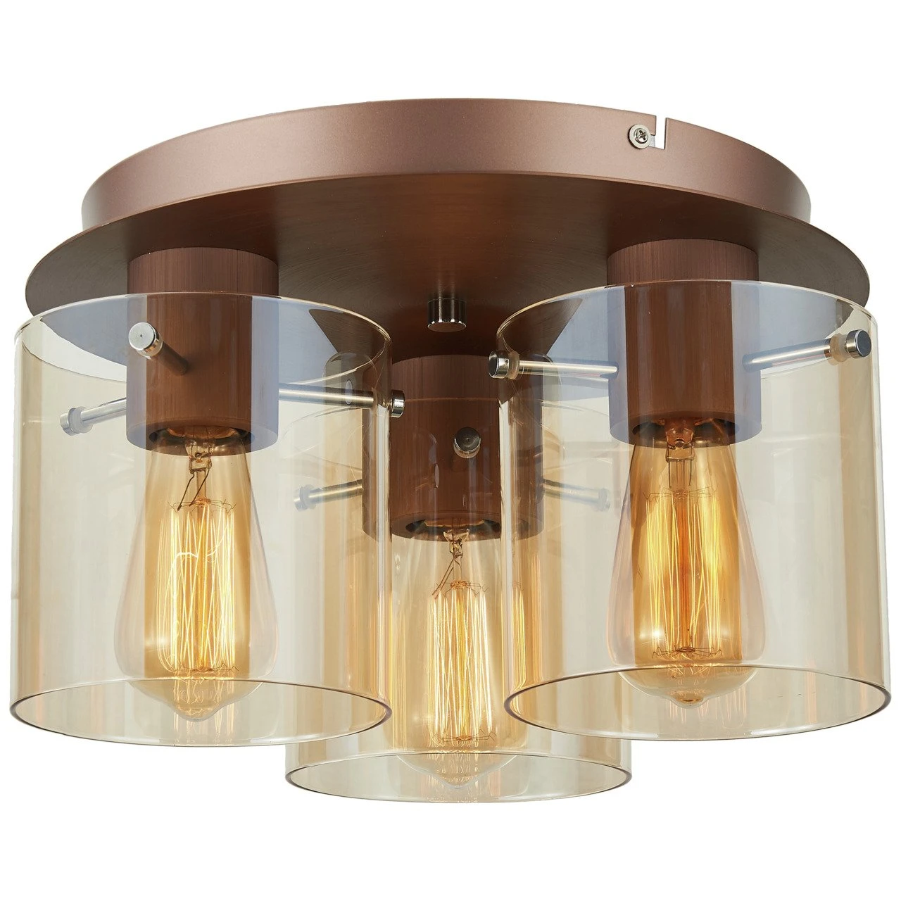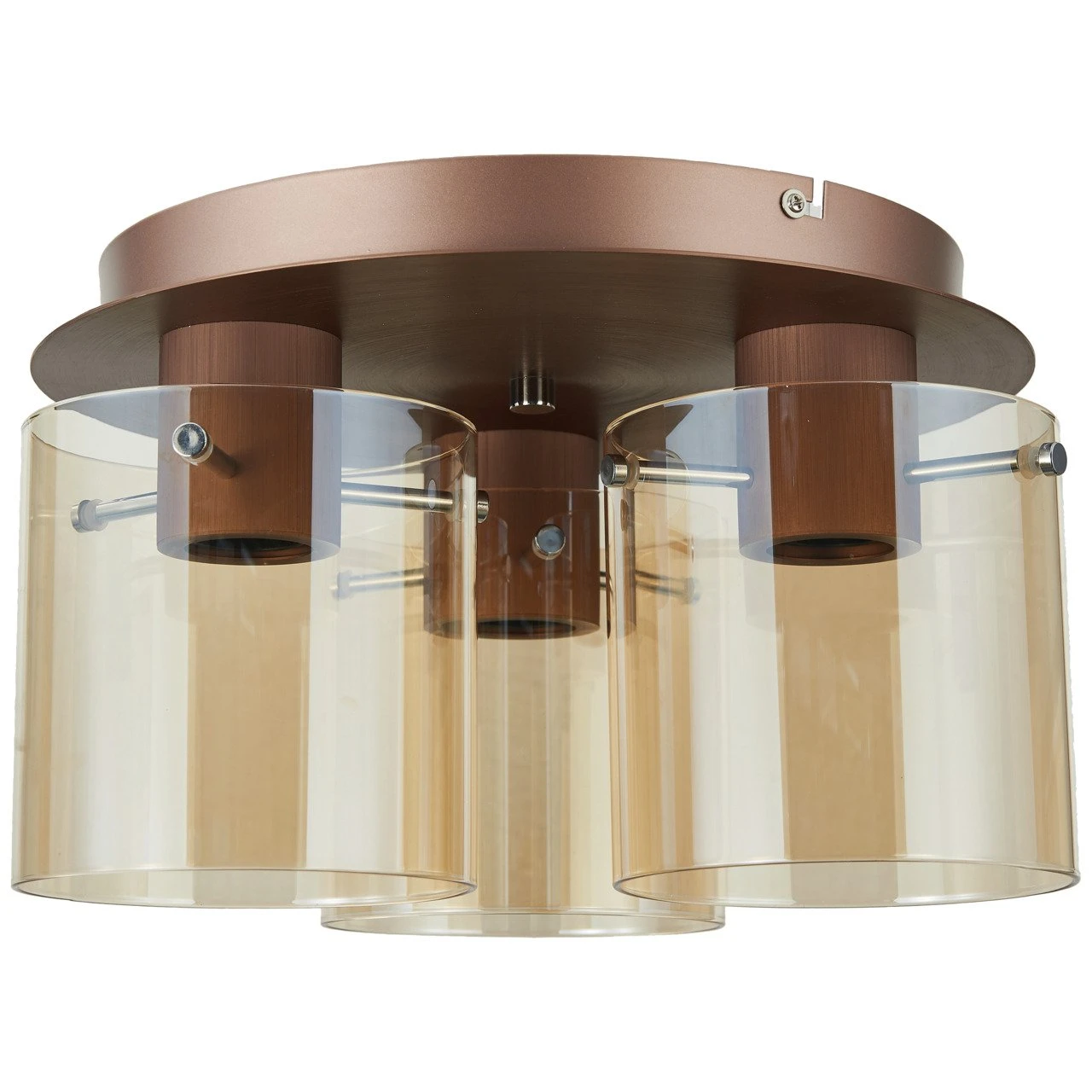 Holen Sie sich mit dieser Deckenleuchte hervorragende Beleuchtung und ein einladendes Wohnambiente in Ihr Zuhause. Sie müssen zur Deckenleuchte zusätzlich noch drei Lichtquellen kaufen. Die Deckenlampe besitzt eine Leistungsaufnahme von 60 W. Sie steht in Brilliant-Leuchten-Markenqualität für ausgezeichnetes Design und ein einzigartiges Wohnerlebnis. Die Leuchte misst in der Breite insgesamt 43 cm, weist eine Tiefe von 42 cm auf und ist 26 cm hoch. Glas wurde bei dieser Lampe verarbeitet. Die Leuchte ist an die Aufnahme von Leuchtmitteln mit einem E27-Sockel angepasst. Die Deckenleuchte in einem Kupfer-Farbton bietet nicht nur ein schönes Lichtbild, sondern avanciert dank ihrer attraktiven Optik auch zu einem tollen Dekoobjekt.
