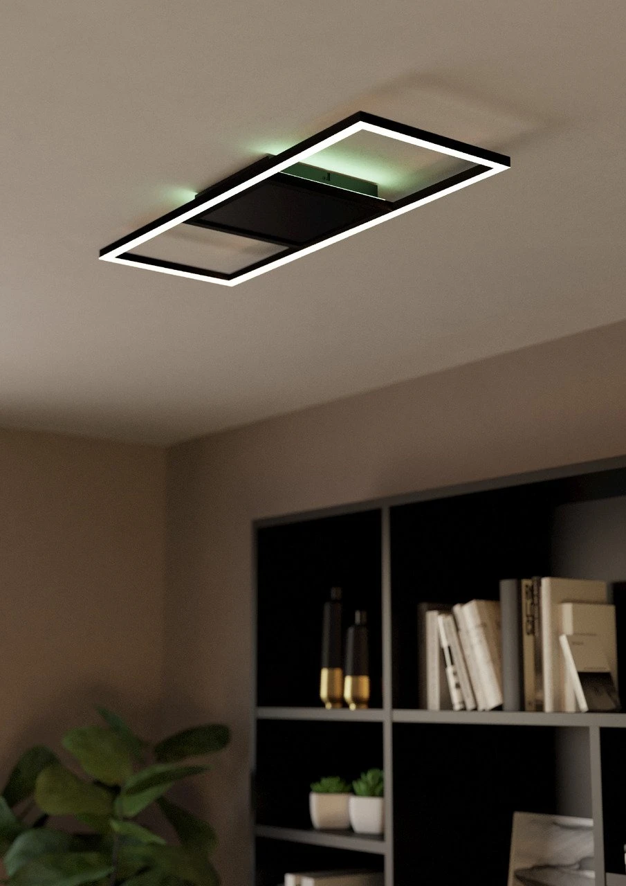 Auch in Ihrem Interieur macht diese formschöne LED-Deckenleuchte ganz bestimmt eine tolle Figur. Die Deckenlampe verfügt über eine Farbwechselfunktion, mit der Sie die Lichtfarbe Ihren Bedürfnissen anpassen können. Sie ist mit Hilfe einer Fernbedienung komfortabel ein- und wieder auszuschalten und ist mit einer Dimmfunktion, die für eine gemütliche Wohlfühlatmosphäre sorgt, ausgestattet. Gut durchdachte Gestaltung und ein überzeugendes Wohngefühl prägen diese Leuchte der Marke Eglo Leuchten. Die Leuchte hat die Farbe Schwarz. Sie ist insgesamt 24 Zentimeter breit, besitzt eine Tiefe von 64 Zentimetern und verfügt über ein Höhenmass von 4,5 Zentimetern. Die Leuchte aus Aluminium sorgt nicht nur für ein schönes Lichtspiel, sondern erfüllt auch einen dekorativen Zweck.