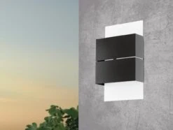 Diese Wandleuchte sorgt für besondere Lichtakzente an jeder Wand. Die Wandlampe besitzt eine E27-Fassung. Sie weist eine Gesamthöhe von 20 cm, ein Breitenmass von 14 cm und eine Tiefe von 11 cm auf. Die Leuchte ist aus Stahl angefertigt. Alle Qualitäten und Highlights der Marke Eglo Leuchten kommen in dieser Wandlampe zusammen. Die Leuchte ist schwarz. Diese Lampe macht sowohl ein- als auch ausgeschaltet eine gute Figur.