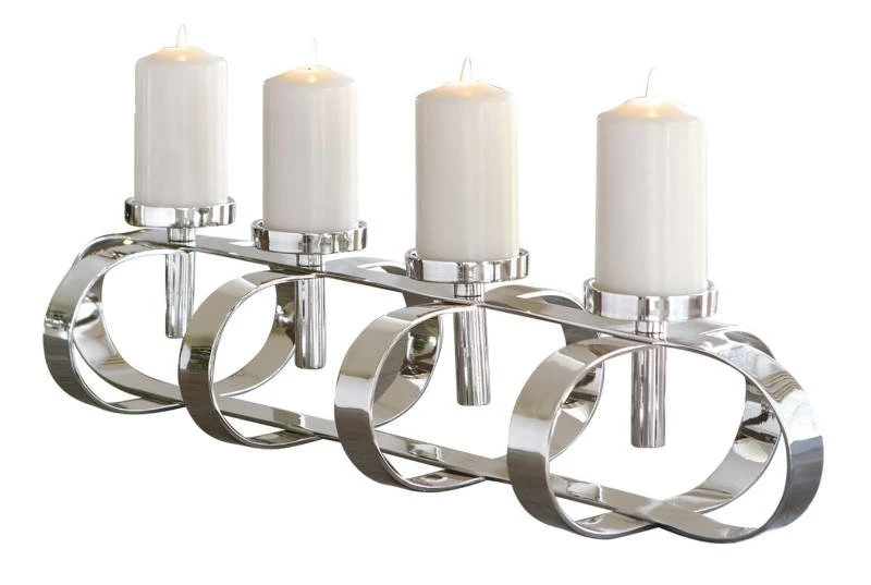 Der 4-flg. Leuchter “Gorden” aus dem Hause Fink weiß durch sein tolles Design zu punkten. Hergestellt wird er aus vernickeltem Metall mit einem edlen Silberglanz. Das Gestell ist in einer schwungvollen Form gehalten. Mit einer Länge von ca. 85 cm hinterlässt er als attraktiver Blickfang einen imponierenden Eindruck bei Ihren Gästen. Ein vielseitig einsetzbares Dekoaccessoire.