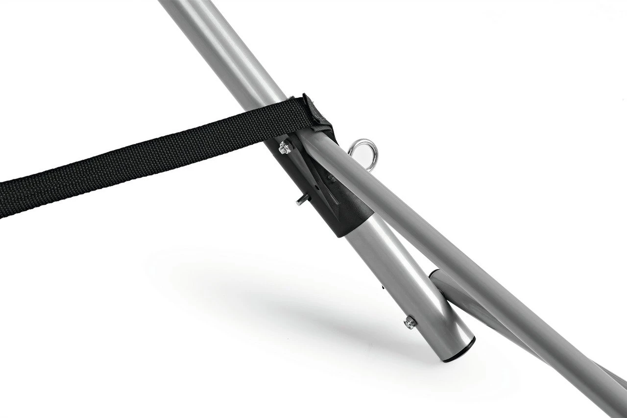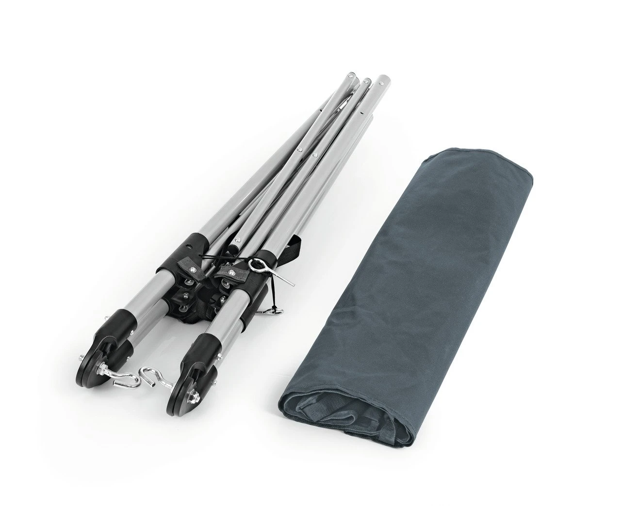 Die Hoberg Klappbare Hängematte können Sie flexibel einsetzen. Durch den fix zusammenfaltbaren pulverbeschichteten Stahlrahmen (Gewicht 8,08 kg) und die inkludierte Tragetasche lässt sich die wetterfeste Ausführung mit zum Strand nehmen, aber auch in Ihrem Campingurlaub nutzen. Aufgebaut können Sie auf dem Modellmaß von L/B/H ca. 240 x 80 x 73 cm bequem im Außenbereich entspannen. Die outdoortaugliche und pflegeleichte graue Polyesterauflage trägt Sie dabei sicher. Laschen an den Seiten sorgen für einen leichten Ein- und Ausstieg. Schnappen Sie sich gleich die Hoberg Klappbare Hängematte!