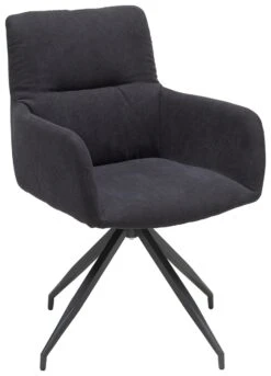 Mit dem Hom´in Armlehnstuhl “JENNY” statten Sie unterschiedliche Raumbereiche aus. Mit seinem anthrazitfarbigen Stativgestelll sowie die in Velvet Schwarz durchgehend bezogenen Sitzflächen fügt sich der Beisteller zum modernen Wohnambiente sowie jedem Farbklima.