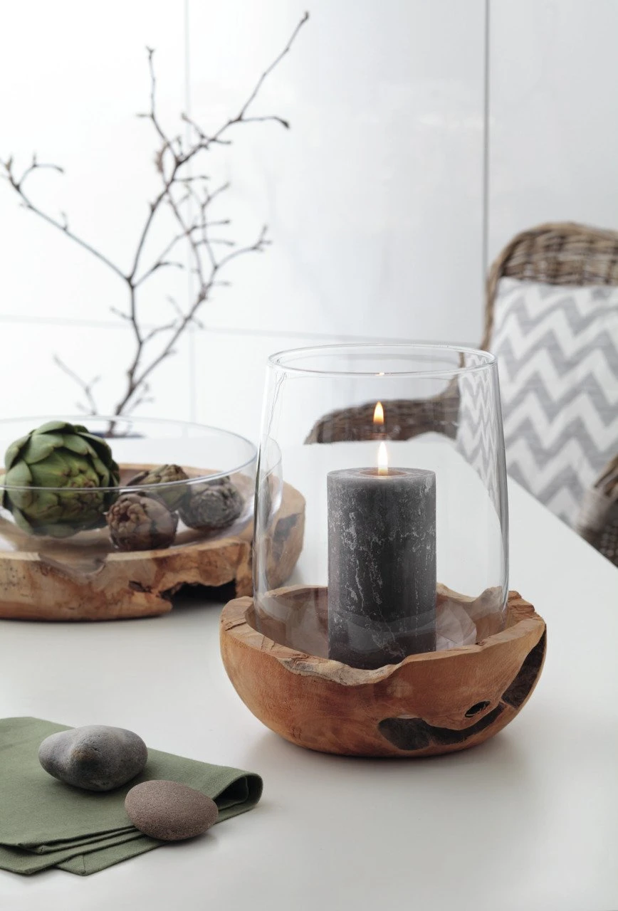 Gemütliches Windlicht 27 mit Teak Toscana “TOSCANA” von Leonardo aus Glas