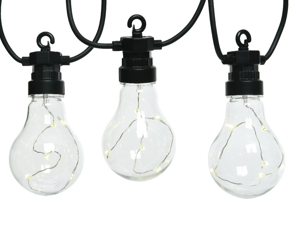 Mit der schwarz-weißen Lumineo LED Party-Beleuchtung verleihen Sie Ihrem Garten-Event oder der Feier im heimischen Partykeller einen Hauch von Retro. Bei einer Länge von 950 cm und einem Gewicht von 1,12 kg lässt sie sich auch in jedem anderen Raum als hübsches Dekoelement nutzen. Außerdem setzen Sie mit stimmungsvollen Lichtakzenten Ihren Außenbereich perfekt in Szene. Die Lichterkette besteht aus Kunststoff und ist mit IP44-Schutz ausgestattet. Ihre glasklaren Glühlampen werden jeweils von warmweißen LED-Leuchtmitteln illuminiert. Freuen Sie sich auf die Lumineo LED Party-Beleuchtung!