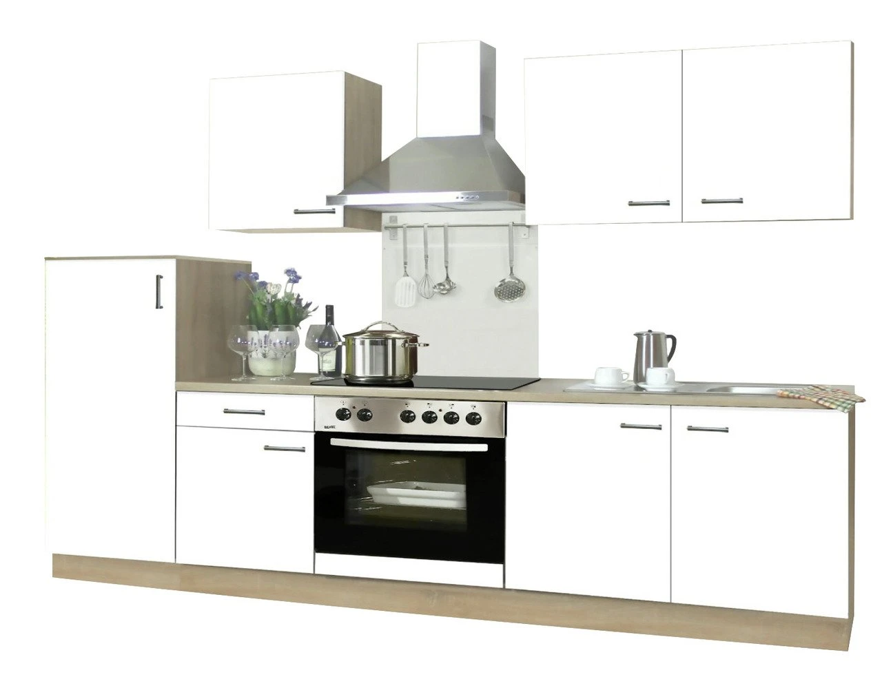 Die Fronten des Küchenblocks “BIGGI” von Menke erstrahlen in Weiß, womit er sich auch nachträglich in viele Einrichtungsstile integrieren lässt. So lässt sich auch eine bestehende Küche mit dem Block erweitern. Die Länge von 270 cm ist für die meisten Ansprüche ausreichend. Inklusive sind zwei Hängeschränke, Spülenunterbau, Herdumbau, Anrichte, Kühlschrankumbau, Arbeitsplatte, Einlassbecken, Herd mit Kochfeld, Edelstahlesse und ein Kühlschrank. Holen Sie sich die komplett ausgestattete Küchenzeile in Ihre Wohnung und kochen Sie sofort los.
