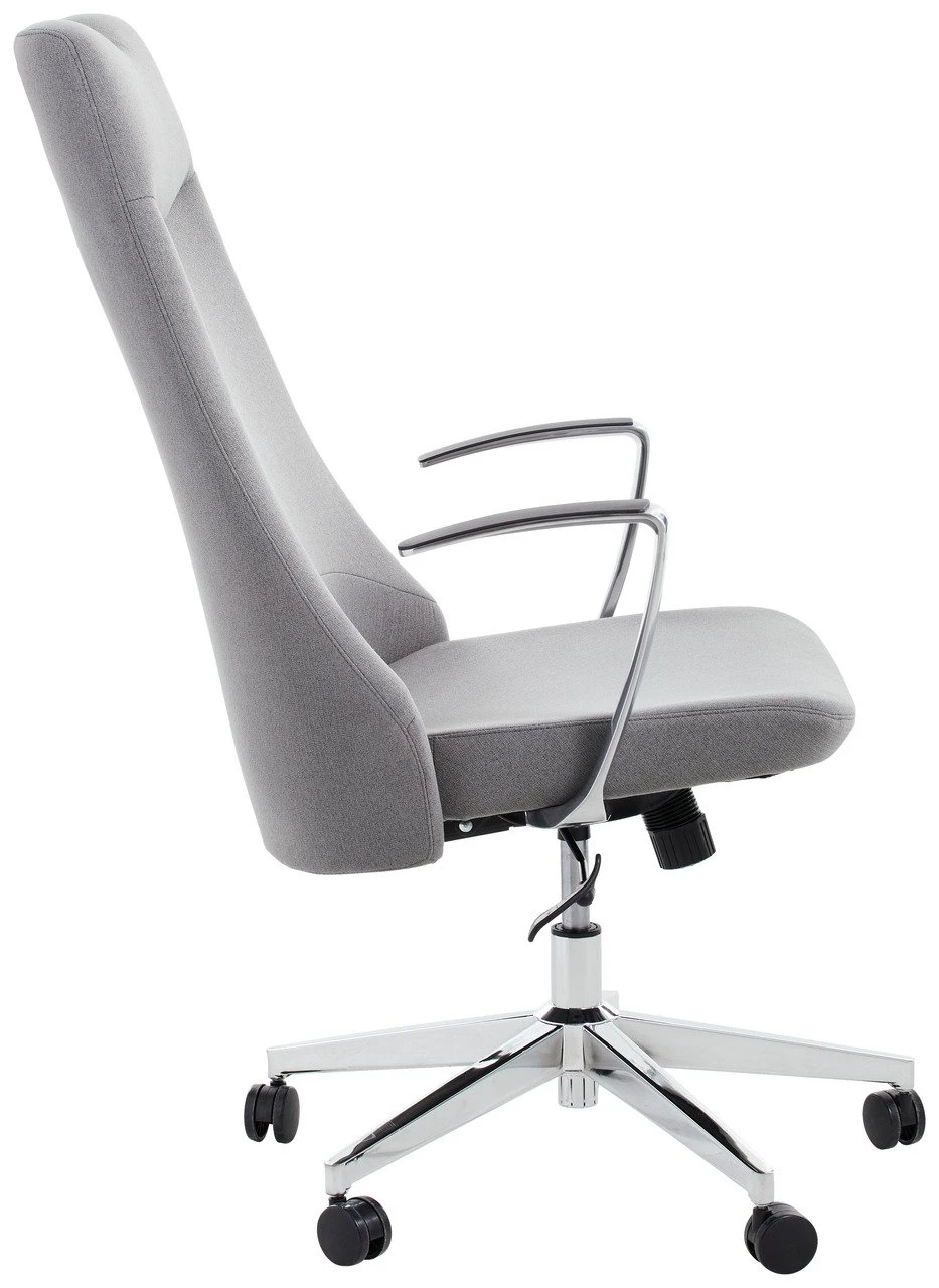 In dem Novel Drehstuhl “DENVER” werden Sie gern Platz nehmen. Der heimelige graue Stoffbezug sowie die klar definierten Konturen des Modells fügen sich jedem modernen Einrichtungsstil. Seine silberfarbenen Armlehnen und ein ebensolches Gestell verströmt das Sitzmöbel minimalistische Eleganz.