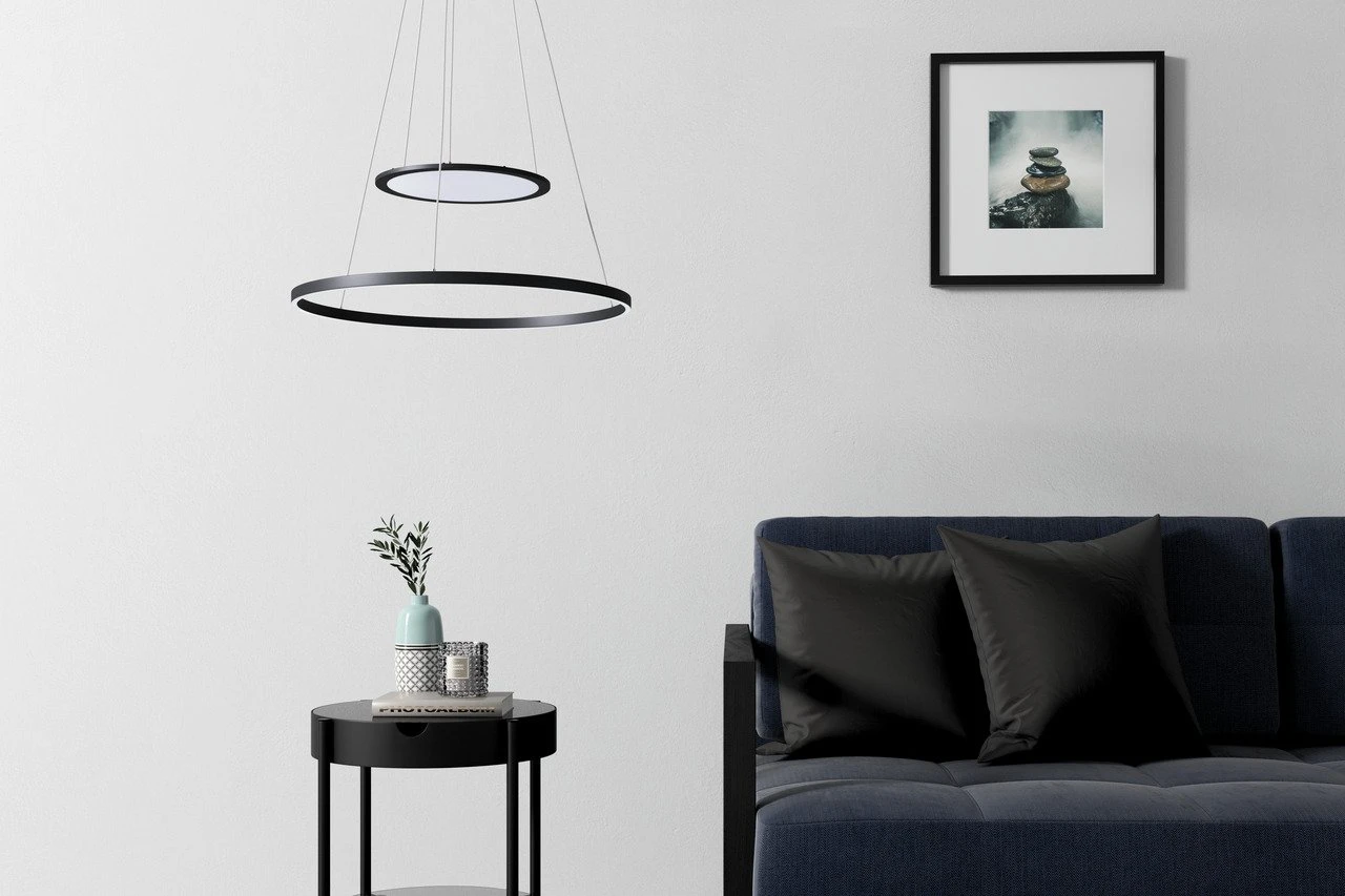 Holen Sie sich mit dieser formschönen Hängeleuchte eine ansprechende Wohnatmosphäre und angenehme Lichtverhältnisse in Ihr Zuhause. Die Hängelampe kann für eine individuelle Regulierung der Helligkeit ganz nach Ihren Wünschen gedimmt werden. Die schwarze Leuchte besteht aus Kunststoff. Sie besitzt einen Durchmesser von 60 cm, ist 150 cm hoch und erfüllt auch im ausgeschalteten Zustand eine dekorative Funktion.