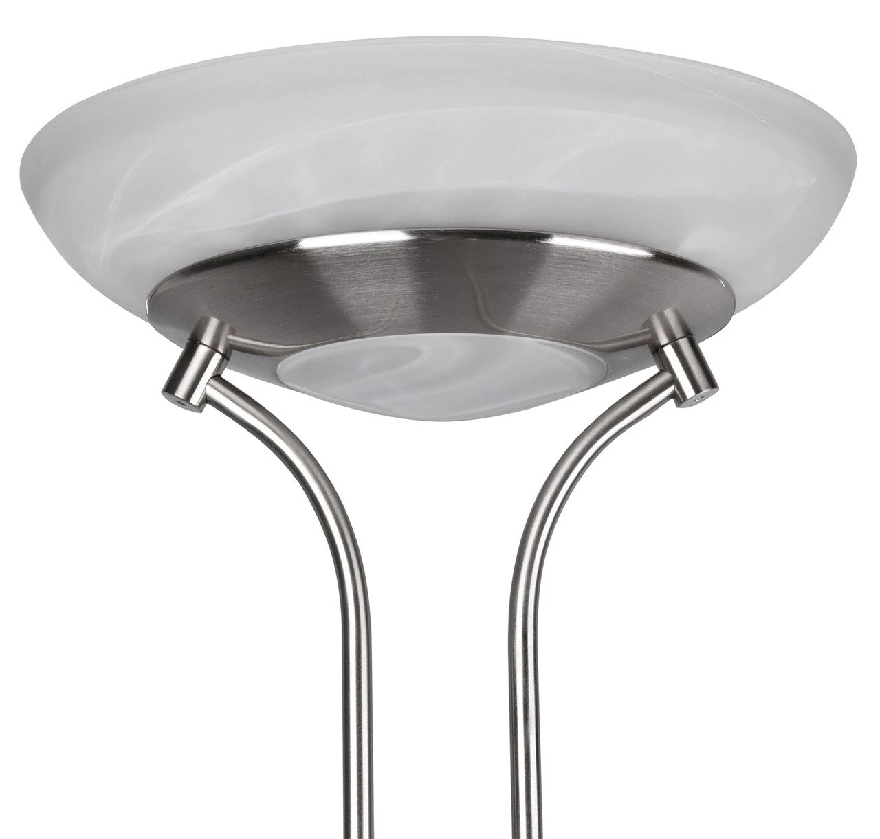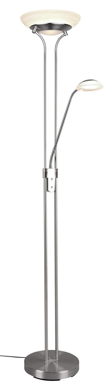 Eine zeitlos elegante Lichtquelle im Wohnbereich ist der Reality Leuchten LED-Fluter “ORSON”. Mit seinem formschönen Metallsockel in Nickelmatt sowie den beiden verschieden großen Alabaster-Glasschirmen illuminiert sie mit ihrem B/H ca. 32,5 x 180 cm Stellmaß (Gewicht 7,65 kg) Lese- und Rundecken. Dabei dient der kleine Schwenkarm als praktische Leseleuchte mit 450 lm. Zwei tauschbare LEDs (27 W, Energieeffizienzklasse A+, Lebensdauer 30.000 Stunden, 15.000 Schaltzyklen, 230 V, IP20) bieten eine warmweiße Farbtemperatur von 3.000 K zu einem Gesamthelligkeitswert von angenehmen 3.200 lm. Kaufen Sie sich den Reality Leuchten LED-Fluter “ORSON”!