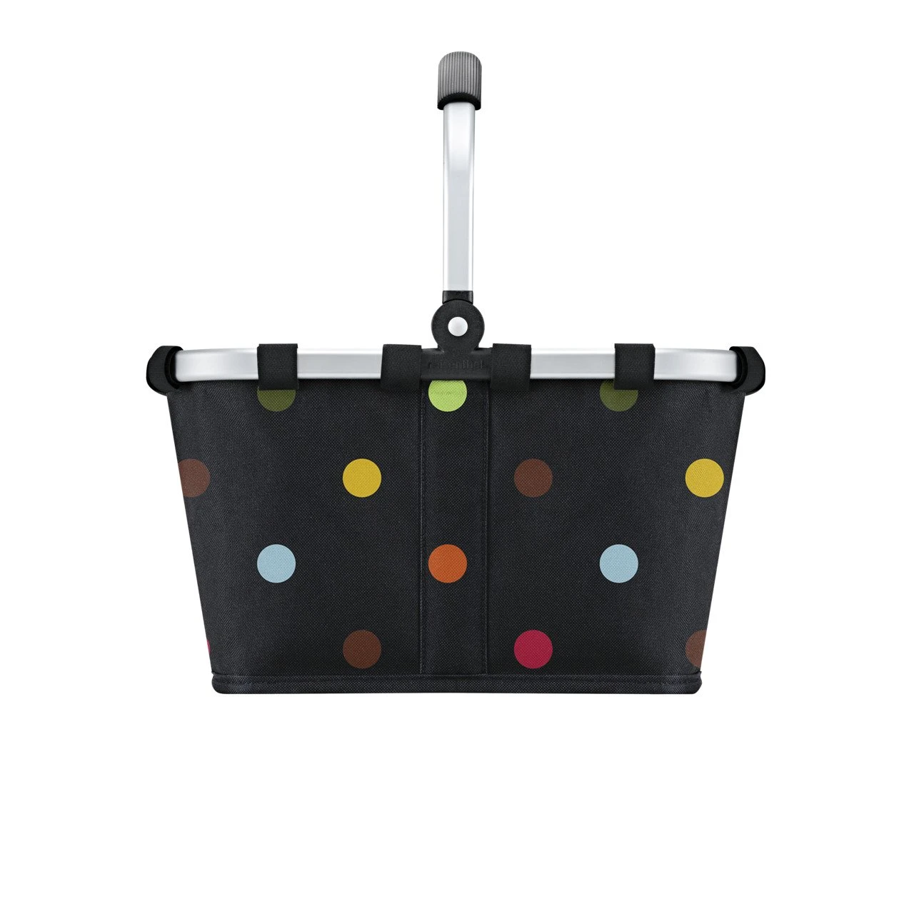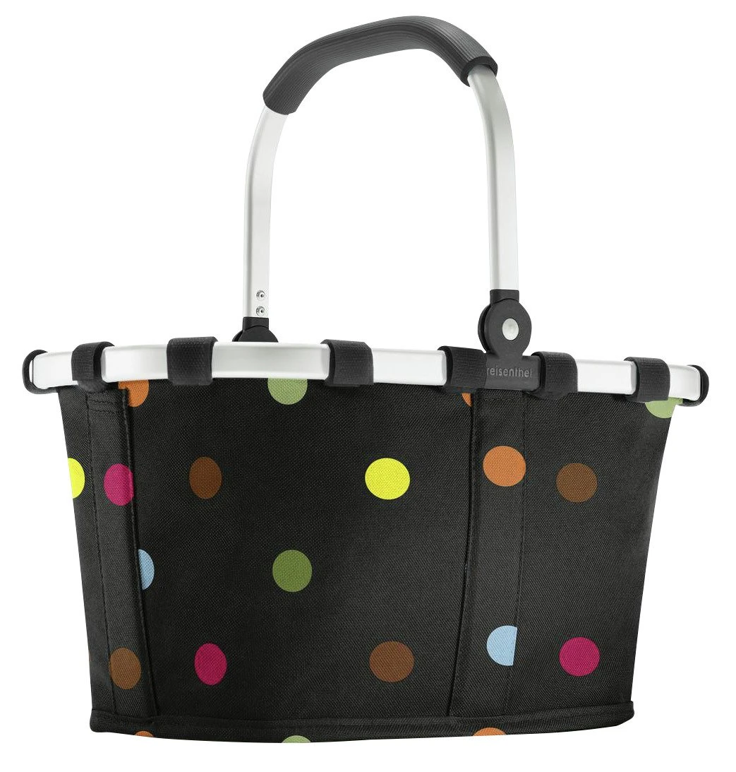 In Schwarz und mit bunten Polkadots versehen begeistert die reisenthel carrybag mit fröhlichem Design, das jeden Lifestyle ergänzt. Besonders angenehm bei voller Zuladung des Korbs ist der mit weichem schwarzem Kunststoff ummantelte Henkel. Schließlich bekommen Sie in das Gesamtmaß von B/H/T ca. 33,5 x 21 x 19,5 cm einiges hinein. Daher eignet sich das praktische, aber robuste Leichtgewicht von 0,94 kg auch als Tragehilfe für Ausflüge, Reisen, oder um Lernmaterialien zu transportieren. Sein hochwertiges wetterfestes Polyester wurde ressourcenschonend aus recycelten PET-Flaschen hergestellt und hat langlebige Eigenschaften. Nehmen Sie die reisenthel carrybag!