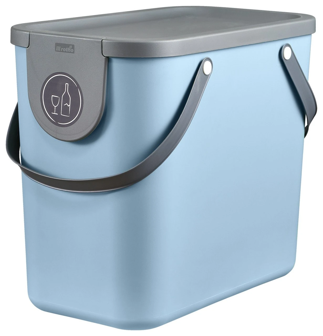 Beim rotho Recycling Müllsystem 25 l “ALBULA” in Blau-Grau wurde mitgedacht. Auf B/H/T ca. 23,5 x 34 x 40 cm fasst er 25 l und hat einen praktischen Flascheneinwurf. Den vollen Eimer tragen Sie an Henkeln hinaus.