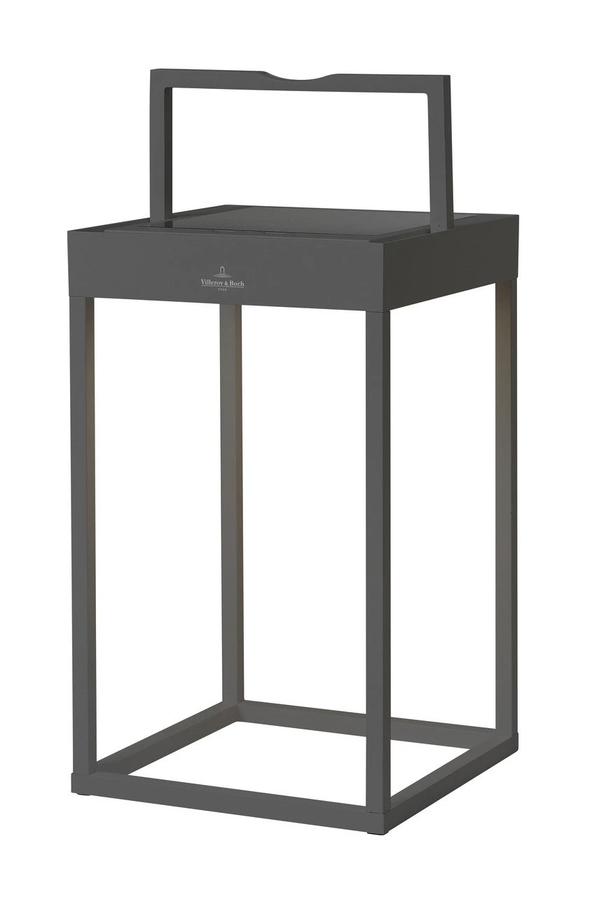 Die Villeroy & Boch LED-Laterne “CANNES” zeigt ein reduziertes Designkonzept, das sich unkompliziert zu jedem Outdoorambiente gesellt. Ihr pulverbeschichteter anthrazitfarbener Aluminiumrahmen in geometrischer Formgebung ist mit einem praktischen Tragegriff ausgestattet. Dadurch kann das hochwertige Modell (L/B/H ca. 18,5 x 18,5 x 30 cm, Gewicht 1,61 kg) leicht seinen Platz tauschen. Sein leistungsstarkes solarbetriebenes 2,2-W-LED-Leuchtmittel (IP65, Hybrid-Ladetechnik via Photovoltaik-Paneel und USB-Kabel) ist stufenlos dimmbar und erzielt eine warmweiße Farbtemperatur (3.000 K) bei angenehmen 150 lm. Nehmen Sie die Villeroy & Boch LED-Laterne “CANNES”!