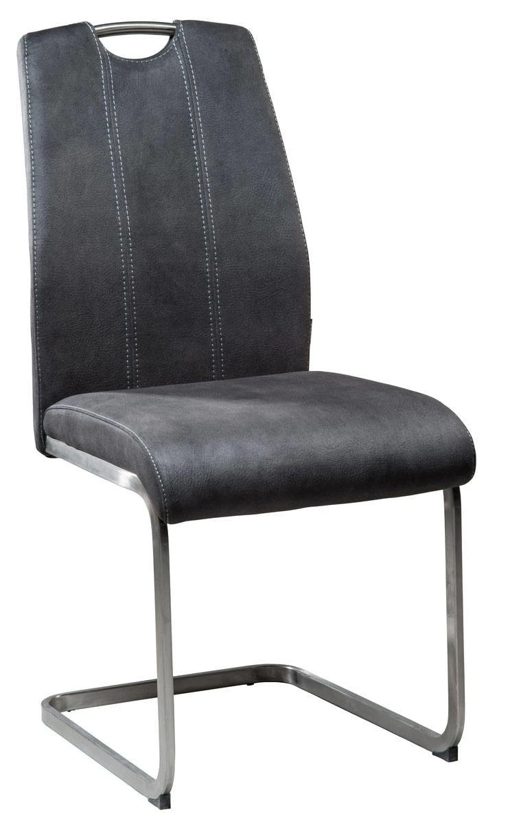 Der Freischwinger-Stuhl “TEXAS” von XORA besticht durch seine elegante, moderne Optik in dunklem Grau. Zwei vertikal verlaufende kontrastierende Doppelnähte zieren die Rückenlehne. Schlicht und dennoch designstark eignet sich der Stuhl ohne Armlehnen damit für Wohn- und Essbereiche ebenso wie für Ihr Büro.