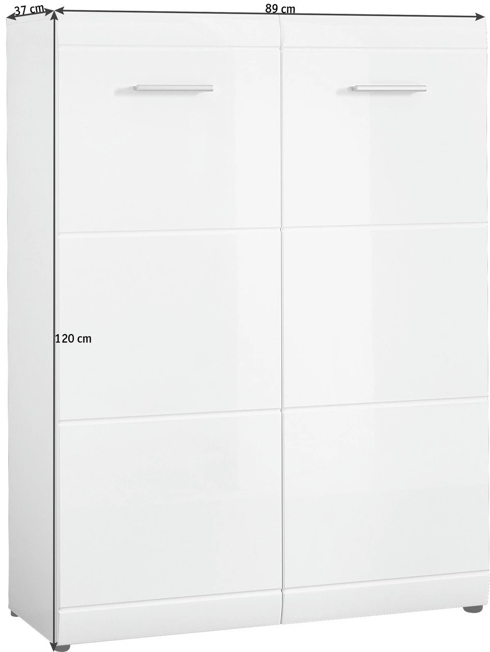 Der weiße Schuhschrank “AVILA” von Xora gehört zur gleichnamigen Garderobenserie, kann aber auch als Solist verwendet werden. Der Korpus in Holznachbildung wird mit einer hochglänzenden, tiefgezogenen, weißen Front aus MDF verziert. Hinter den beiden Türen befinden sich 5 verstellbare Einlegeböden und bieten viel Platz für Ihre Schuhe. Mit seinen Maßen B/H/L von ca. 90 x 120 x 36 cm bietet der Schrank jede Menge Platz, ohne selbst viel Raum in Anspruch zu nehmen. Geben Sie Ihren Schuhen ein neues Zuhause mit dem Schuhschrank “AVILA” von Xora!