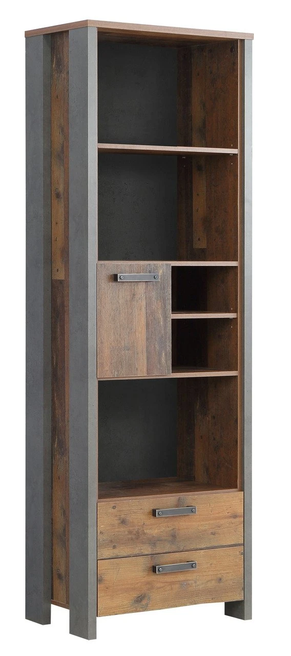 Mit Korpus und Front im Old-Vintage-Look und seiner Kombination mit dunkelgrauer Betonoptik ist das Z2 Regal “CLIF” ein Schmuckstück. Es passt ins Wohn- oder Esszimmer.