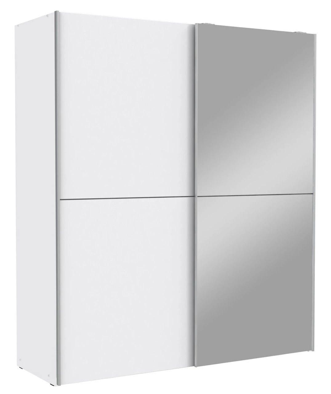 Für den aufgeräumten Eindruck im modernen Schlafbereiche gibt es den Z2 Schwebetürenschrank 2-türig “WHITE KISS”. Seine grifflose halbierte Spiegelfront verleiht dem geradlinigen weißen Design puristische Eleganz.