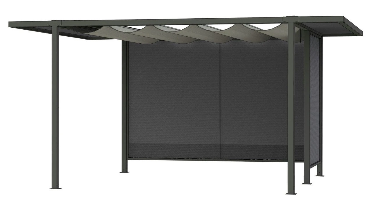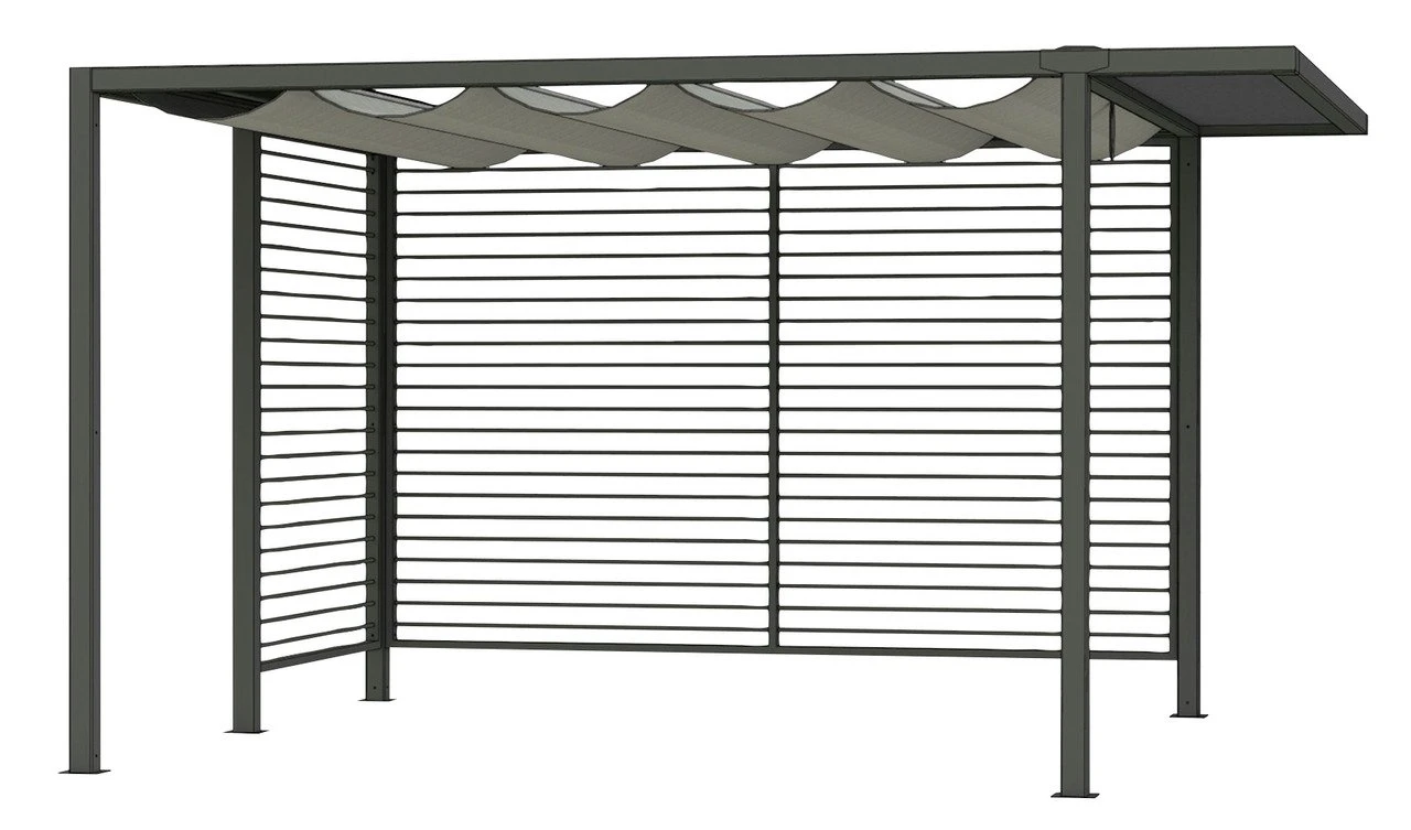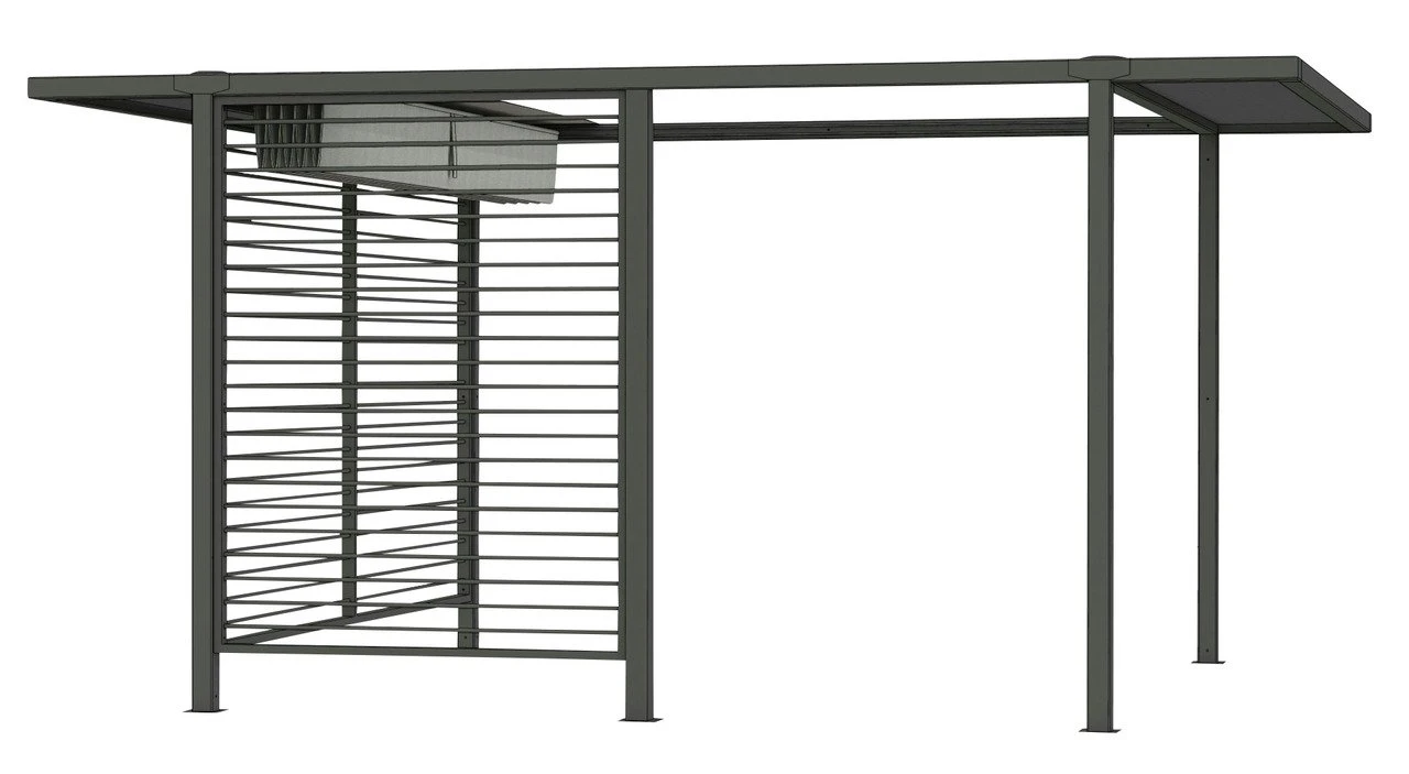 Machen Sie es sich unter der ZURBRÜGGEN Dacherweiterung “SCHATTENMANUFAKTUR” gemütlich. Das praktische Erweiterungskonzept der gleichnamigen Pergola schützt Sie vor intensiver Sonnenbestrahlung sowie Nieselregen im Gartenbereich. In Anthrazit fügt sich das Element zu jedem Farbgeschmack Ihres Outdoorkonzepts.