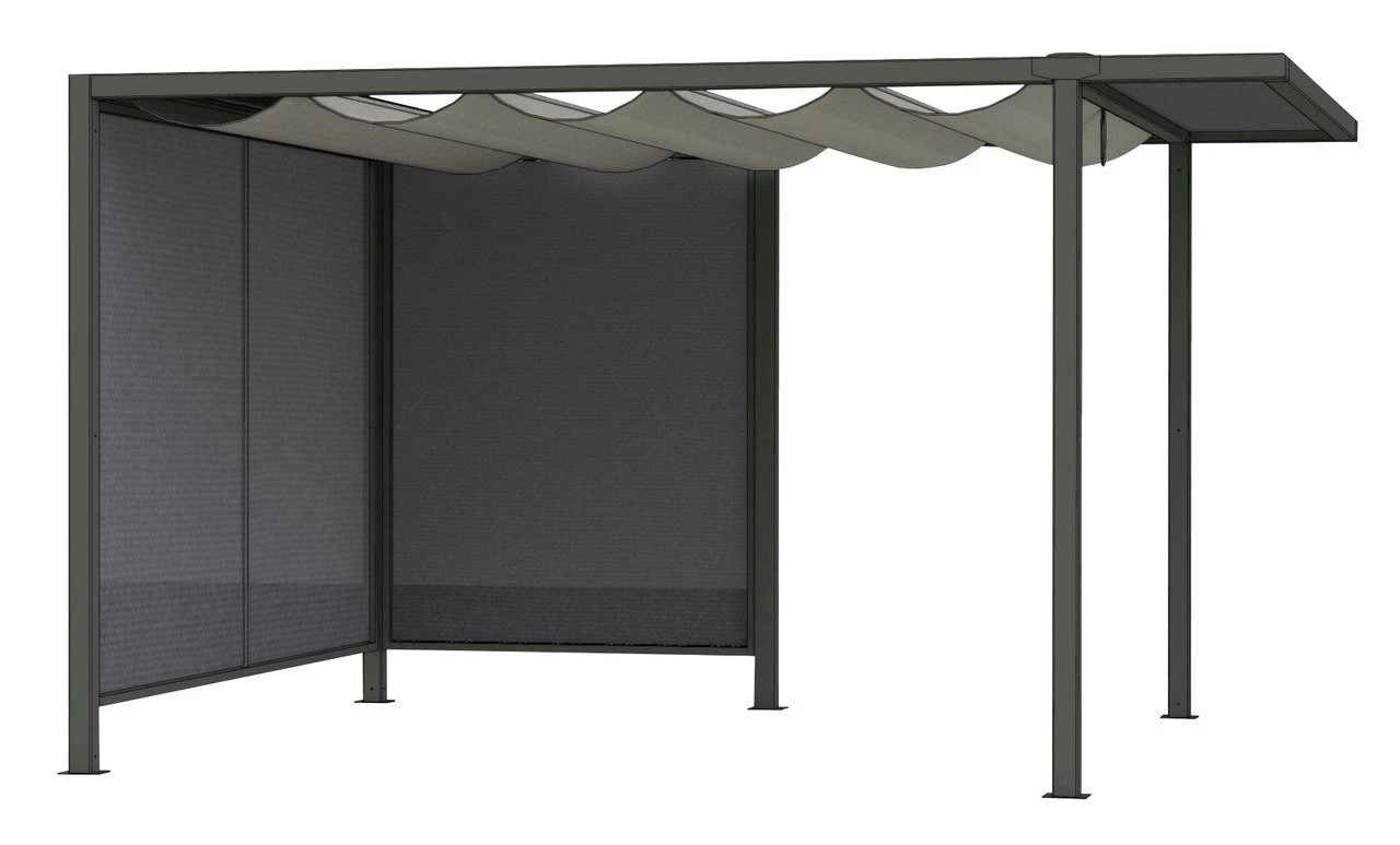 Bei Abmessungen von B/T ca. 60 x 300 cm wird das hochwertige Modell aus pulverbeschichtetem anthrazitfarbenen Aluminium (Gewicht 8,5 kg) einfach an die Pergola montiert. Dadurch erhalten Sie nicht nur eine vergrößerte Schattenfläche, sondern auch einen stylishen Sichtschutz zum Nachbarbereich. Schnappen Sie sich noch die ZURBRÜGGEN Dacherweiterung “SCHATTENMANUFAKTUR”!