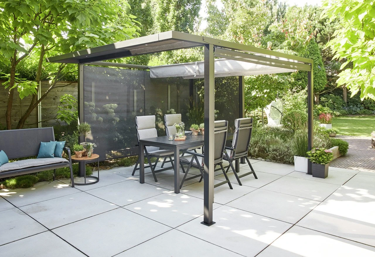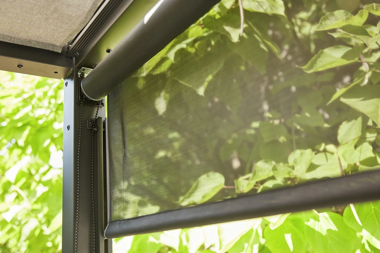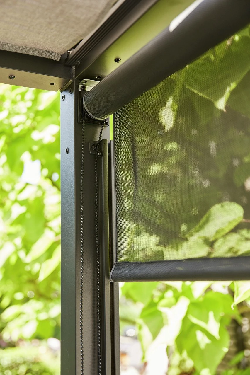 Ihre gleichnamige moderne Pergola machen Sie mit dem ZURBRÜGGEN Rollo “SCHATTENMANUFAKTUR” erst komplett. Es zaubert Ihnen im Handumdrehen Schatten nach Bedarf. Mit B/H ca. 300 x 210 cm Größe fügt es sich nahtlos in den Rahmen der Pergola. Das Rollo aus lichtundurchlässigem anthrazitfarbenem Gewebe sitzt in einem anthrazitfarben pulverbeschichteten Aluminiumrahmen und lässt sich bei 6,5 kg Gewicht easy einbauen. Um es zu öffnen oder zu schließen, bedienen Sie einfach manuell den Seilzug und haben so immer genau den passenden Schatten in Ihrer Outdoorlounge. Gönnen Sie sich das praktische ZURBRÜGGEN Rollo “SCHATTENMANUFAKTUR”!