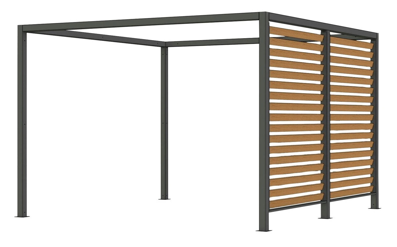 Geschützt vor fremden Blicken sind Sie mit dem ZURBRÜGGEN Sichtschutz Holzoptik “SCHATTENMANUFAKTUR”. Dieser moderne Sichtschutz passt in die gleichnamige Pergola. Die warmen braunfarbenen Lamellen sowie der anthrazitfarbene Rahmen bestehen aus wetterfestem pulverbeschichtetem Aluminium. Durch seine Lamellen in Holzoptik entsteht ein natürlich wirkendes Ambiente, das Sie mit Rankpflanzen zusätzlich verstärken oder einfach mit einem Gewebestoff versehen. Mit B ca. 300 cm Breite passt der 50 kg leichte und einfach zu befestigende Sichtschutz in die entsprechend große Pergola. Upgraden Sie Ihre Wohlfühlzone mit dem ZURBRÜGGEN Sichtschutz Holzoptik “SCHATTENMANUFAKTUR”!